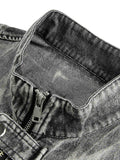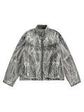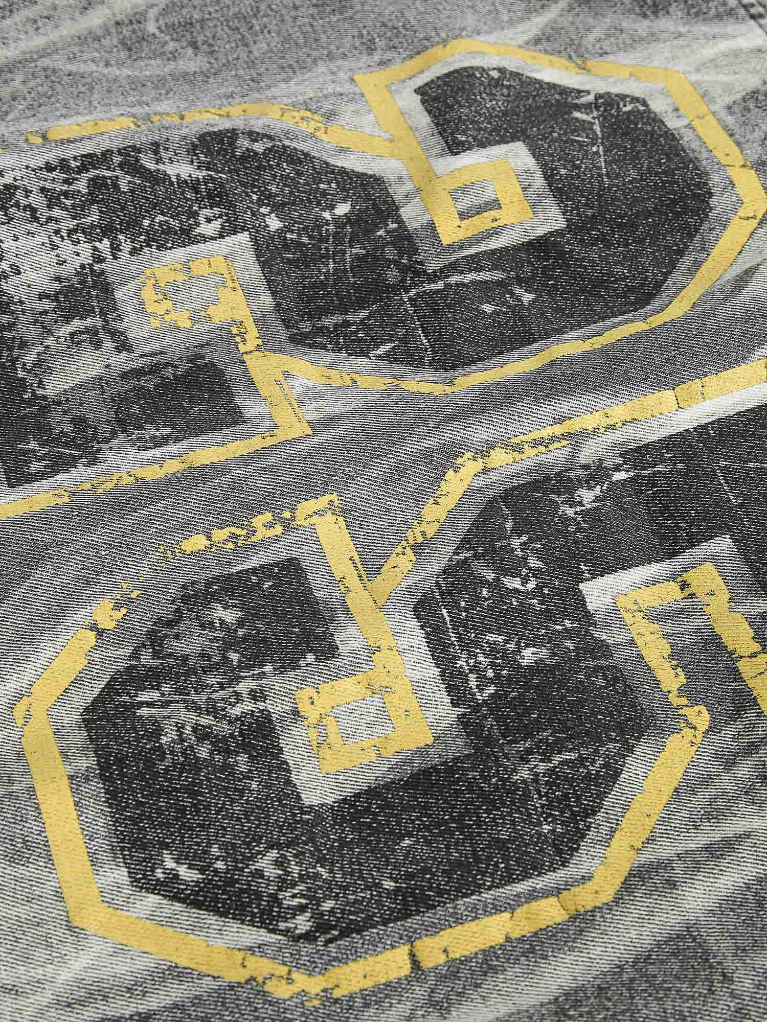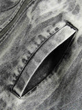 Hip-Hop Eskitilmiş Baskılı Denim Ceket