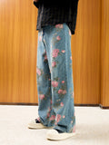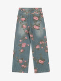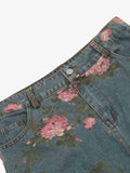 Tamamı çiçek baskılı bu denim jean, yüksek bel tasarımı ve geniş paça formuyla sokak stiline enerjik bir hava katıyor. Elastik beli sayesinde gün boyu konfor sunarken, modern görünümüyle her kombine uyum sağlıyor.