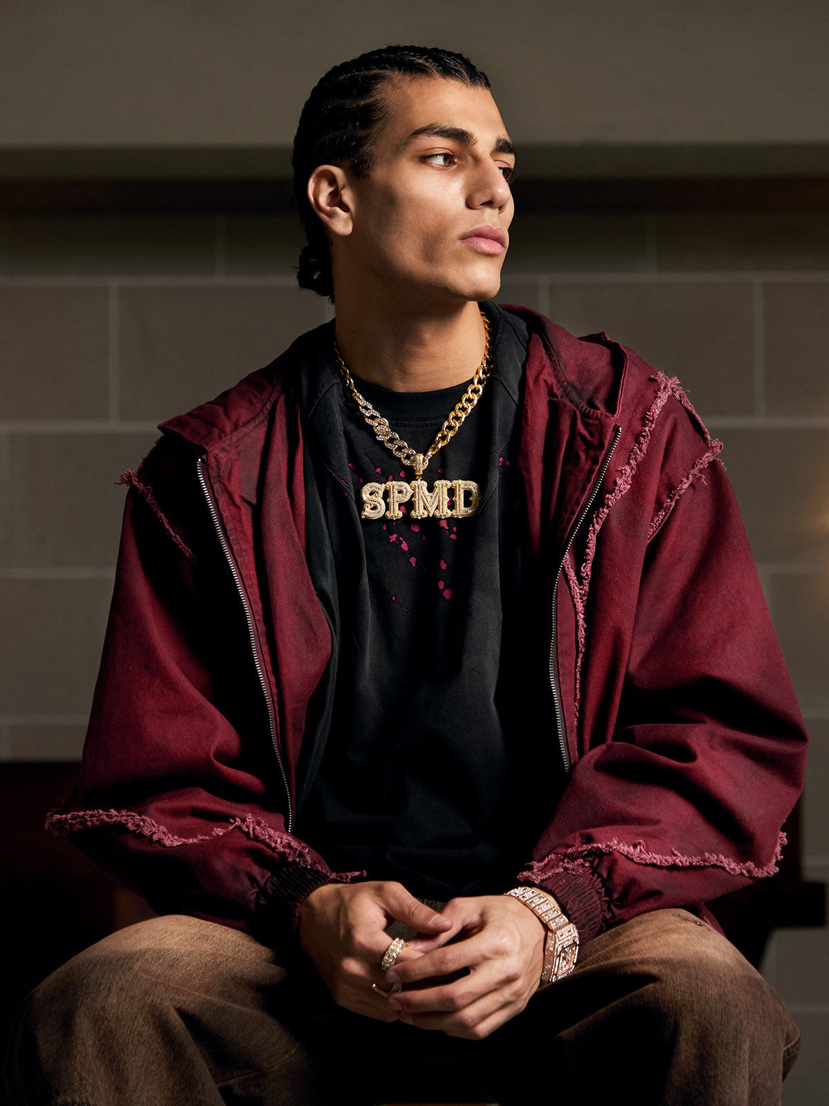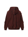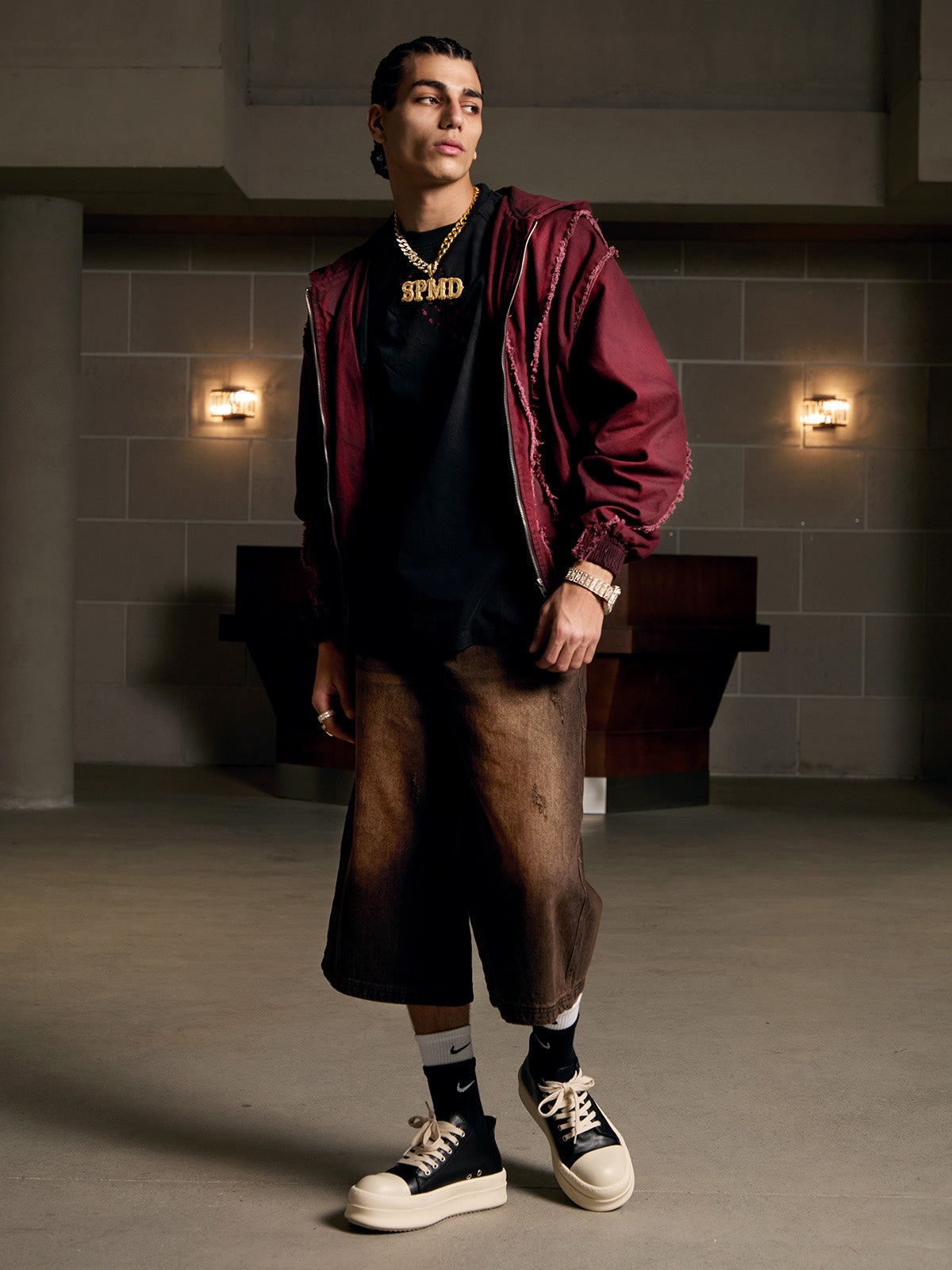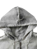 Yumuşak pamuk karışımlı kumaşı ve eskitme dokusuyla kapüşonlu ceket, sokak stiline özgün ve karakterli bir hava katıyor. Püsküllü kenar detayları ve fermuarlı kapanışıyla hem rahat hem de iddialı bir tasarıma sahip.