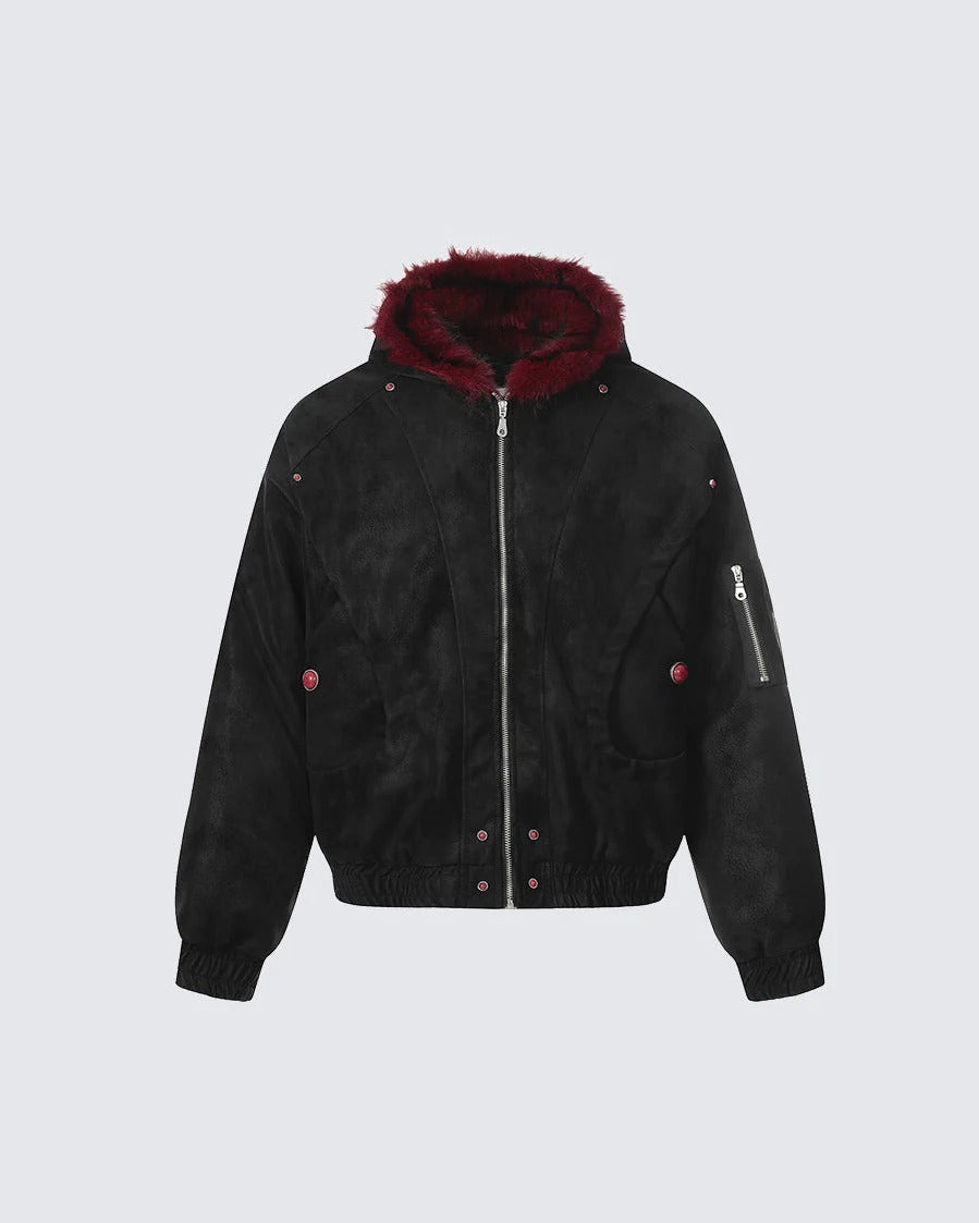 Karanlık tonların gücünü, kırmızı kürkün çarpıcı enerjisiyle buluşturan UrbanLaws Noir Crimson Jacket; sokak stiline iddialı bir dokunuş katmak isteyenler için üretildi. Yumuşak iç kürkü, sağlam dış dokusu ve dikkat çeken detaylarıyla hem sıcak tutar hem de kombininin merkezinde durur.