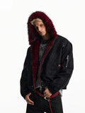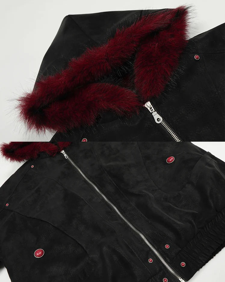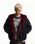 UrbanLaws Noir Crimson Kırmızı Kürklü Ceket