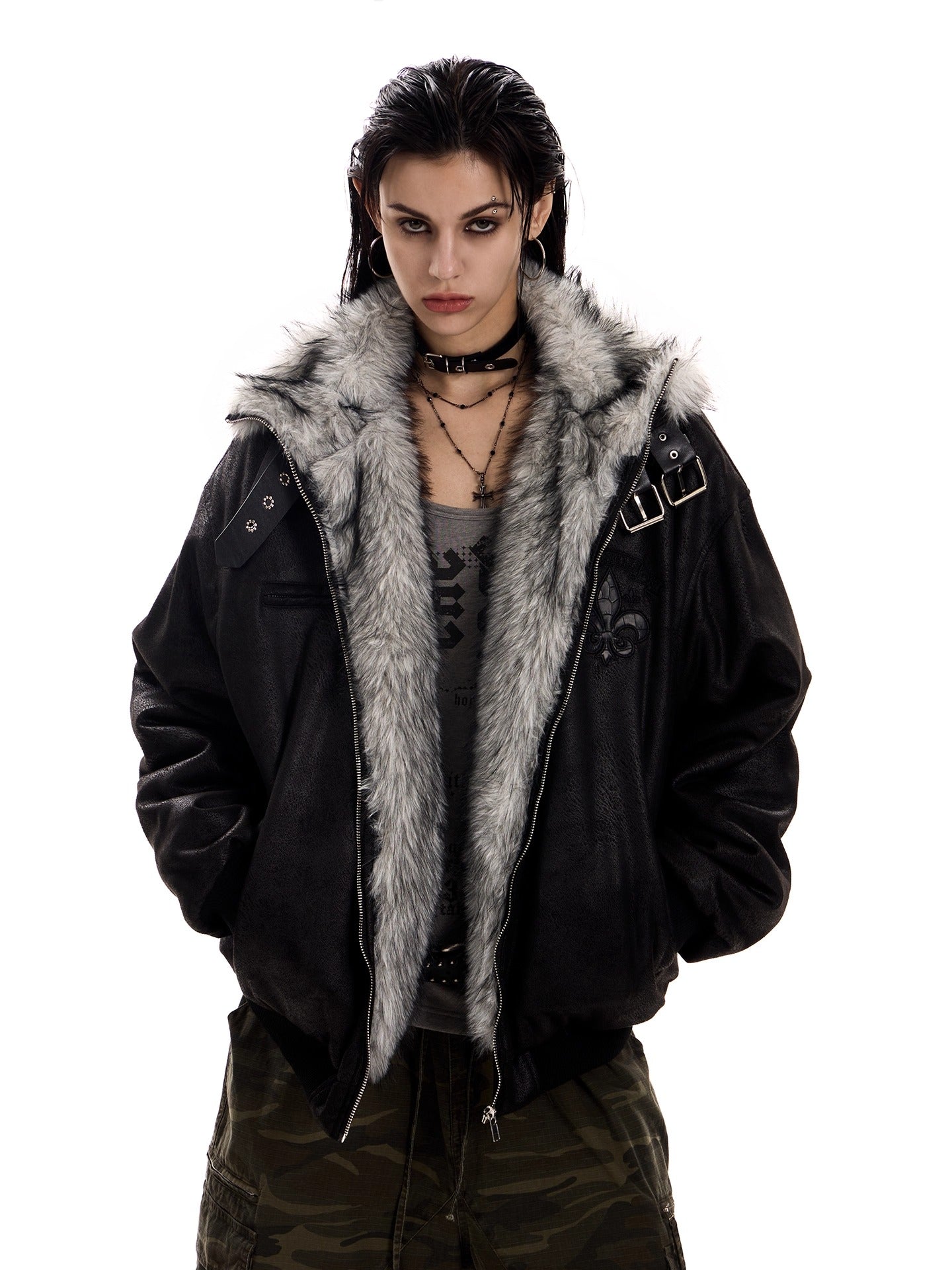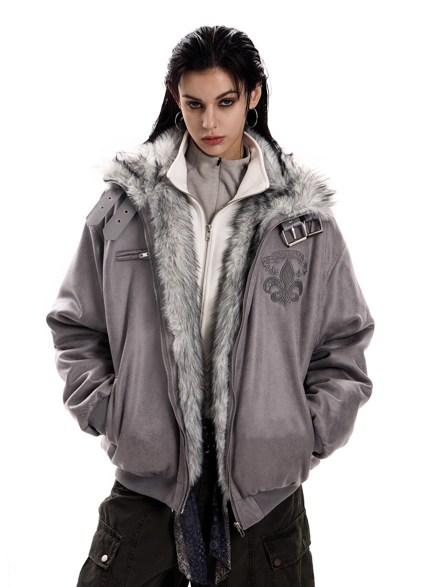 UrbanLaws Geniş Kürk Yakalı Süet Bomber Ceket
