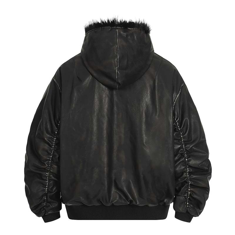 UrbanLaws Deri Kürk Kapüşonlu Oversize Mont