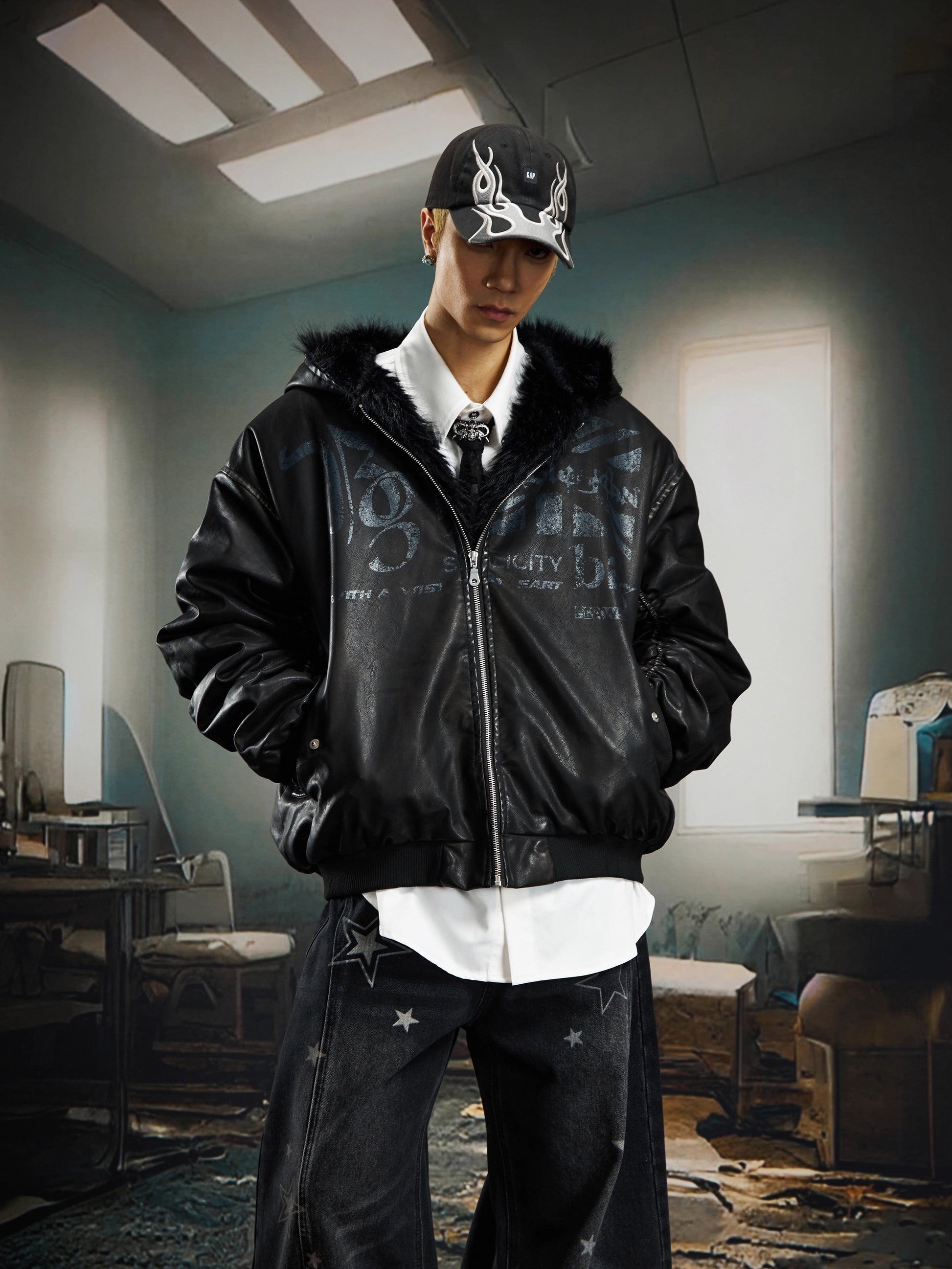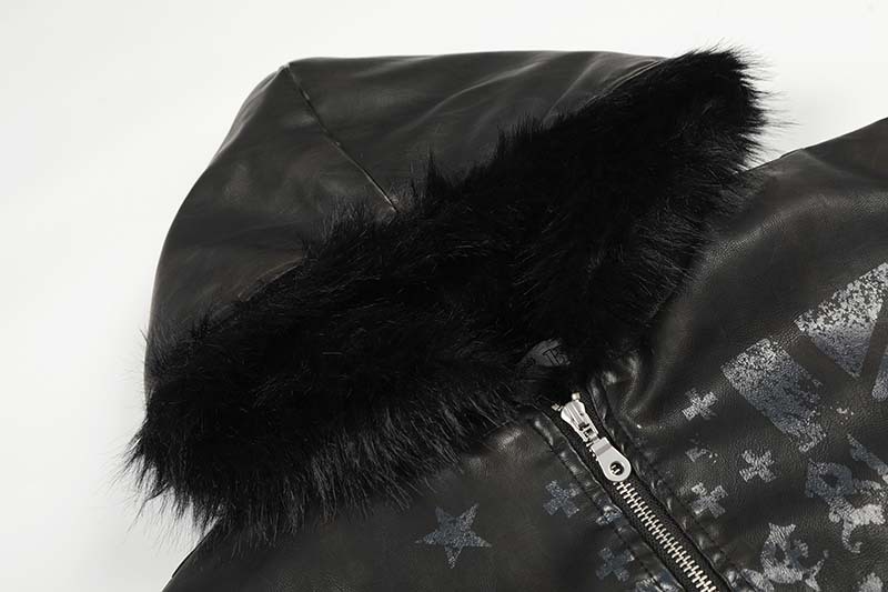 Deri görünümü, siyah kürk kapüşonu ve modern baskı detaylarıyla bu oversize mont sokak stiline güçlü ve karizmatik bir hava katar. Sıcak tutan iç yapısı ve dayanıklı dış dokusuyla hem tarzı hem konforu aynı anda sunar. UrbanLaws ile kışın en dikkat çekici görünümünü yakala.
