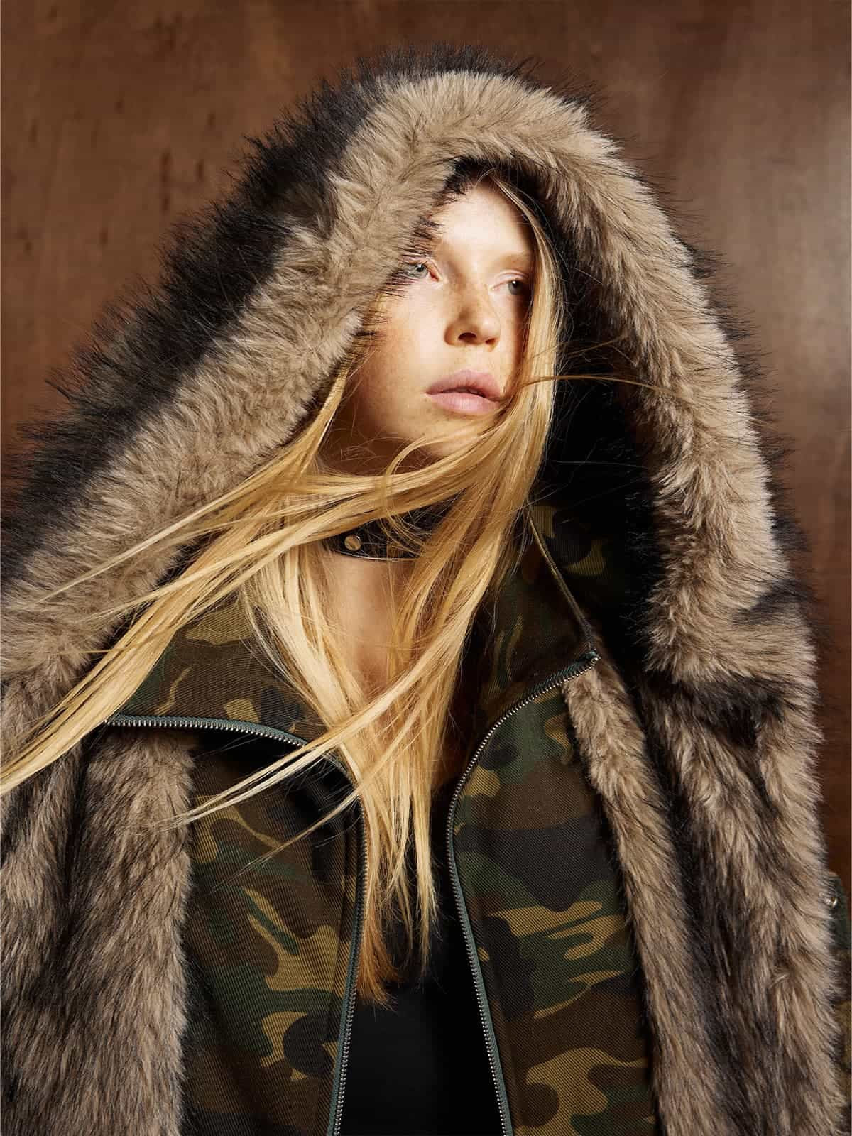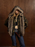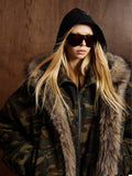 Vintage Kamuflaj Bomber | Kürklü Kapüşonlu