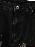 Denime lüks ve sanatsal bir dokunuş. Bu Vintage Düz Kesim jean, detaylı Çiçek Nakışları ve parlak Rhinestone (Taş) işlemeleriyle sıradanlığın dışına çıkar. Nakış tasarımları ve çarpıcı Kırmızı Fermuar aksanları stiline benzersiz bir hava katar. Pratik Kargo Cepleri fonksiyonellik sunar. İlkbahar ve yazın en iddialı, en şık ve asi parçası. Şimdi al, ışıltınla domine et.