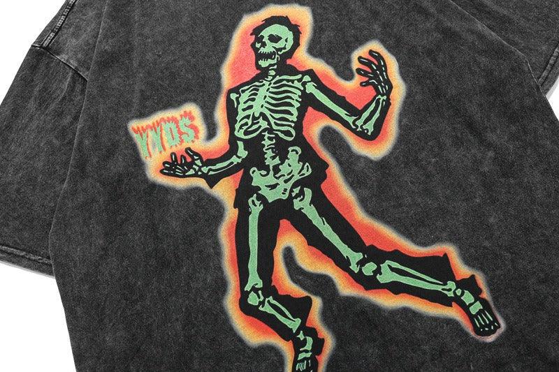 Yıkanmış İskelet Tişört Vintage Tarzı
