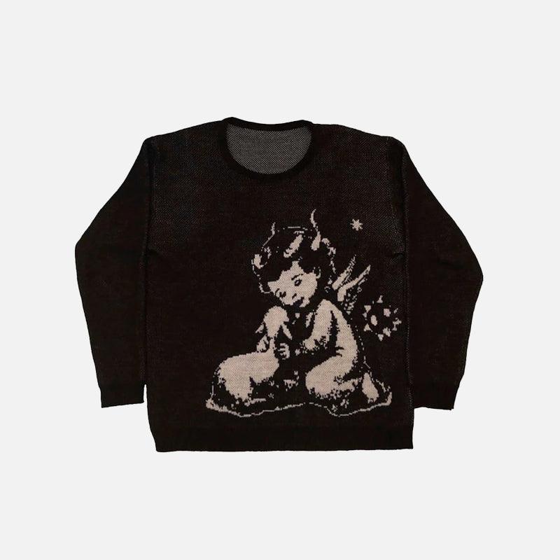 Y2K Melek Çocuk Desenli Kazak