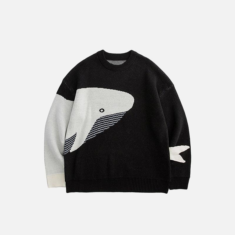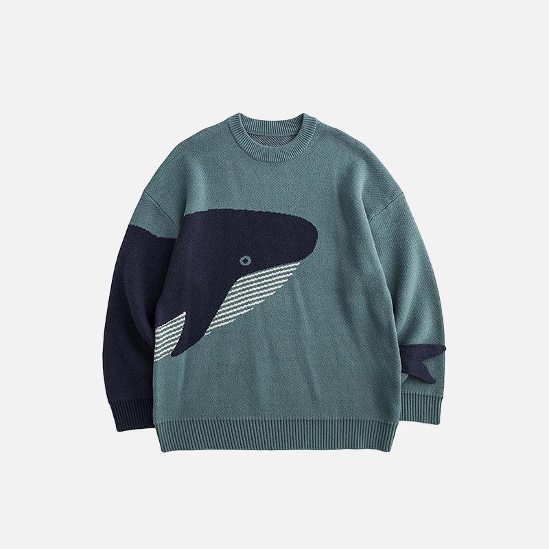 Yalnız Balina Kazakımızla dikkat çekin. Büyüleyici bir balina tasarımına sahip bu kazak, sokak giyimi takımınıza deniz cazibesi katıyor. Hem okyanus tutkunları hem de moda tutkunları için mükemmel olan bu benzersiz ve şık parçayla görünümünüzü yükseltin.