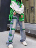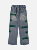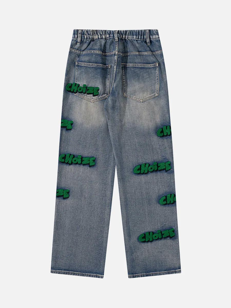 Harfli Floklu Eskitme Düz Jeanlerimiz ile öne çıkın. Cesur harf akını ve eskitilmiş detaylara sahip bu kot pantolon, sokak giyimi görünümünüze asi bir hava katıyor. Cesur bir moda ifadesi oluşturmak için mükemmel olan bu modaya uygun ve çok yönlü parçayla tarzınızı yükseltin.